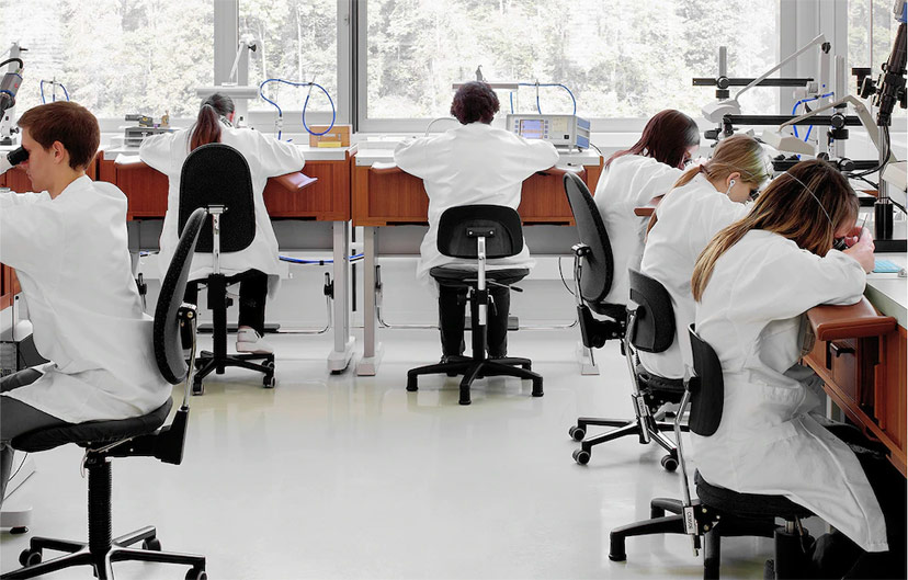 廣州雷達(dá)維修專家們身著白色制服,在配備專業(yè)儀器的工作崗位上凝神靜氣,一心專注于眼前的工作。廣州雷達(dá)工坊的工作氛圍講求寧靜致遠(yuǎn),全心投入創(chuàng)造卓越品質(zhì)。廣州雷達(dá)的專業(yè)表匠均具備廣泛技能與專業(yè)學(xué)識(shí),只為精準(zhǔn)無誤且持續(xù)耐久的機(jī)械時(shí)計(jì)。他們是廣州雷達(dá)腕表走時(shí)精準(zhǔn)、品質(zhì)斐然的保障,也是品牌時(shí)計(jì)卓著聲譽(yù)的幕后功臣。
