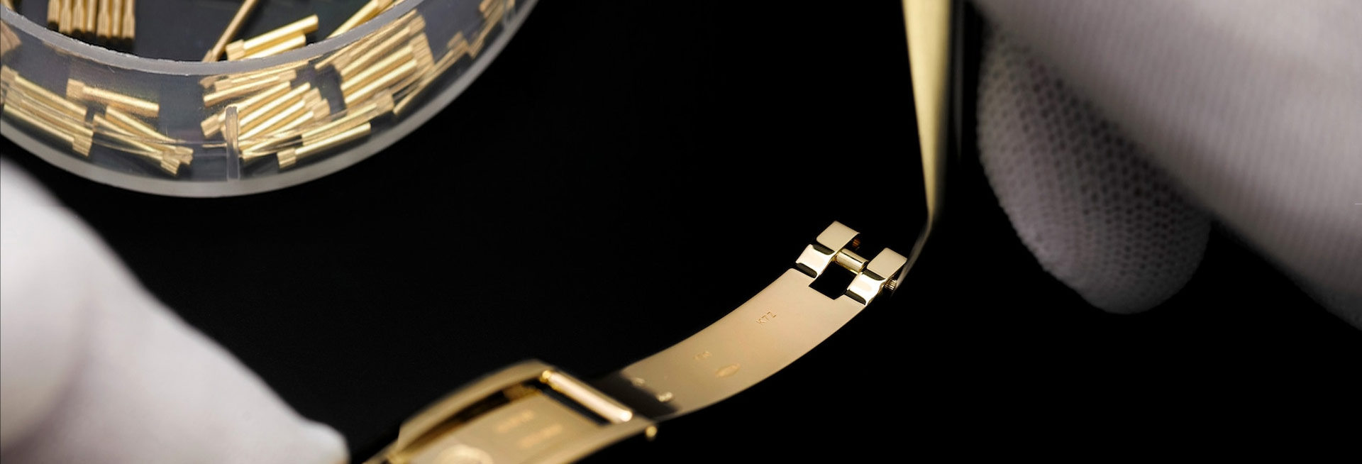 2.拆卸表帶部分是定向的。一般在表帶上有一個箭頭表示表帶節之間的螺柱拔出的方向,這個方向不能反過來。安裝方向與拆卸方向相反。
